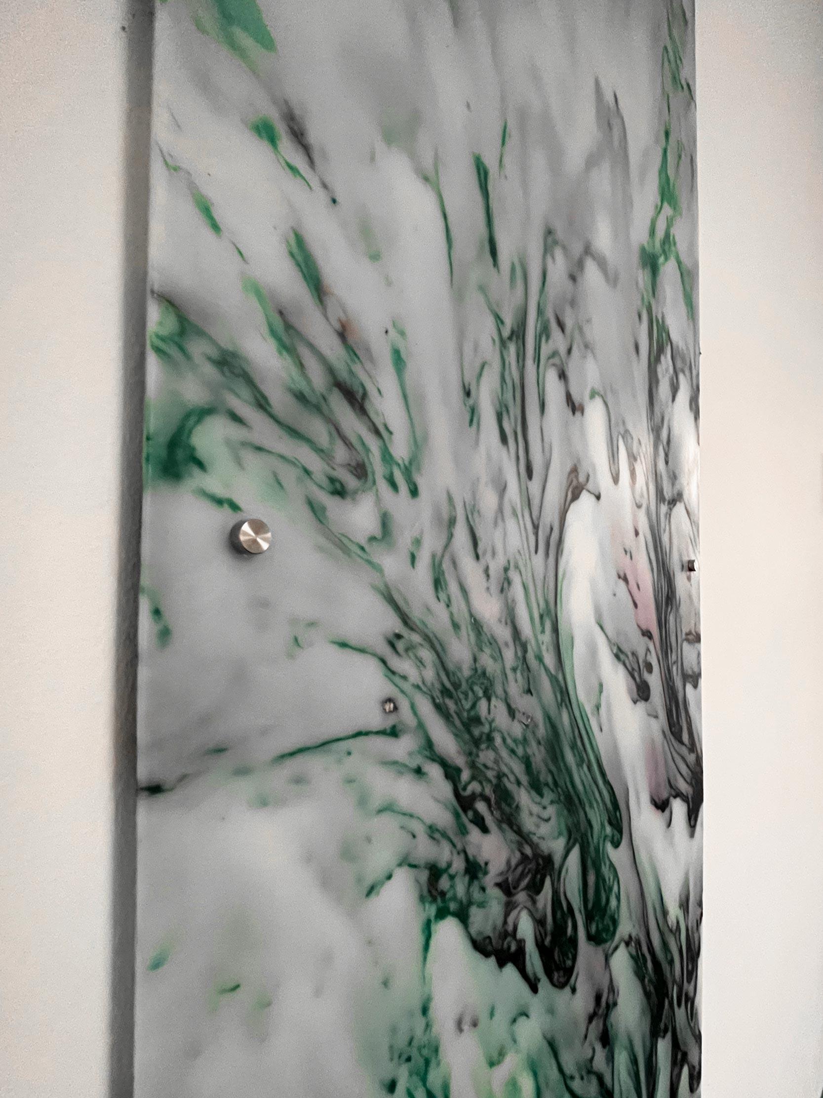 Panele występują w różnych wielkościach: 50 x 160 cm oraz 180 x 100 cm. Płyty Boomplastic są zamontowane w dystansie 10 mm od ściany co pozostawia możliwość podświetlenia półtransparentnych paneli.